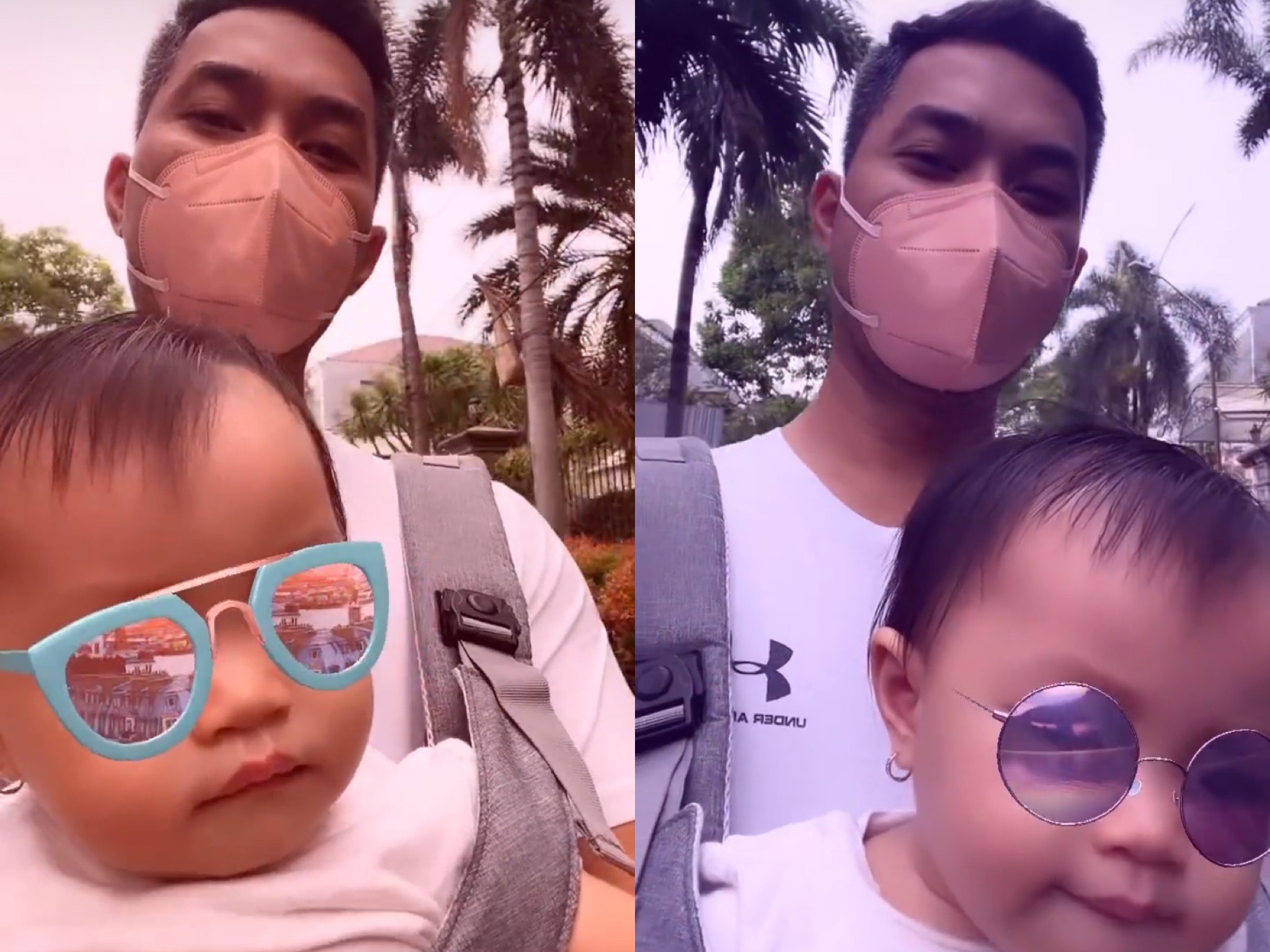 Dia tampak merasa lucu ketika memainkan filter Story Instagram di wajah Arsial dan dirinya sendiri.