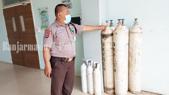 Stok Tabung Oksigen di RSUD Ulin Banjarmasin tersimpan dalam 300 unit berukuran satu setengah meter dan dua penampungan besar, 4.500 kg dan 5 kg.