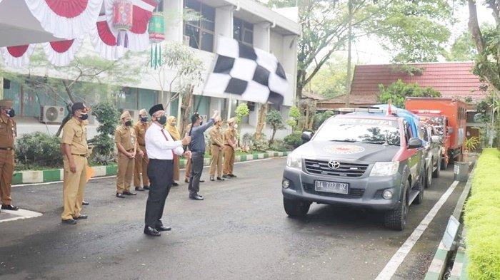 Aksi peduli ini langsung dilepas Bupati HSS H Achmad Fikry di halaman kantor pemkab, Kota Kandangan, Provinsi Kalimantan Selatan (Kalsel), Senin (13/9/2021).