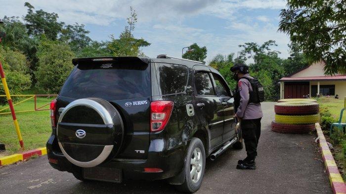 Selain mengendarai mobil berplat hitam ada pula terlihat mobil dinas dengan plat merah milik Pemerintah Kabupaten Hulu Sungai Utara (HSU).