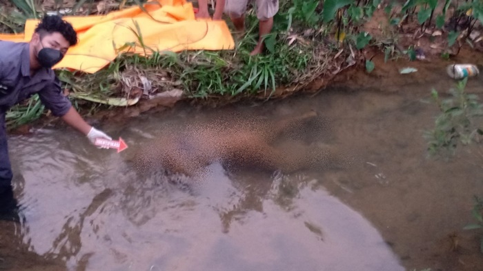 "Setelah di datangi ke lokasi kejadian, korban dalam keadaan posisi tertelungkup di sungai yang mengalir ke sungai kemuning," ujarnya.