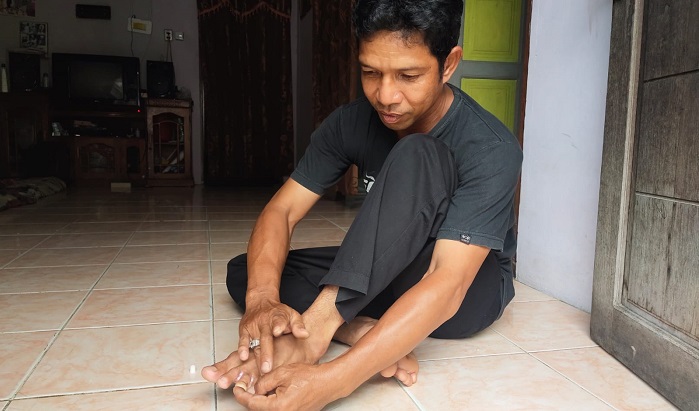 "Karena bolak balik basah terkena air, lalu terkena kutu air. Dan kalau terkena air genangan menjadi perih," katanya.