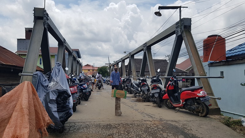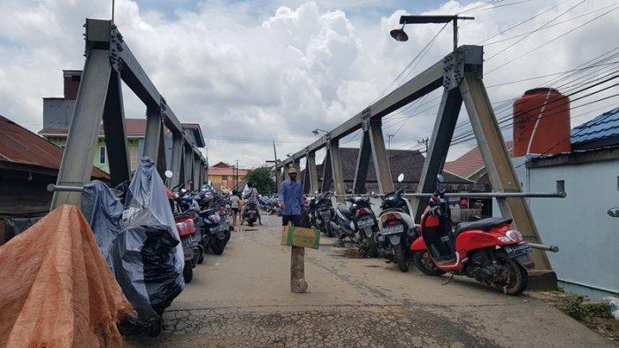 Kendaraan roda dua milik warga diparkir di badan Jembatan KH Badaruddin.