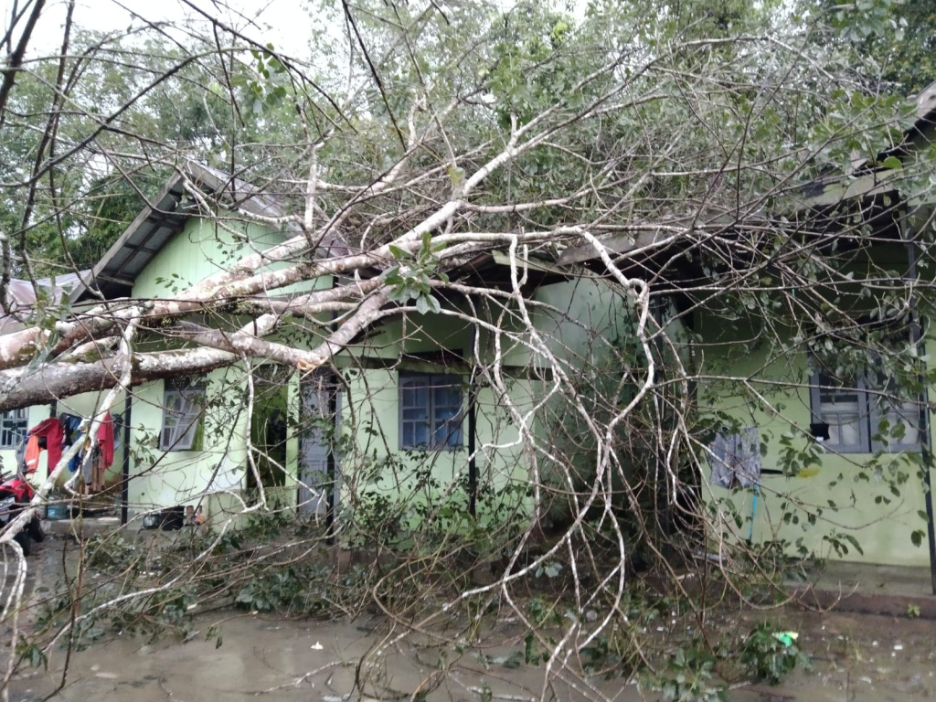 Hujan Deras Disertai Angin Kencang Tumbangkan Pohon dan Timpa Atap Rumah di Tapin