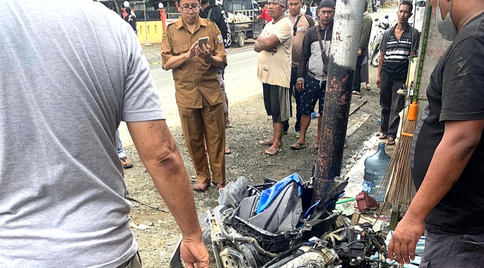 Tabrakan terjadi di sebelah kanan jalan tidak terhindarkan. Pengendara roda dua meninggal di lokasi kejadian.