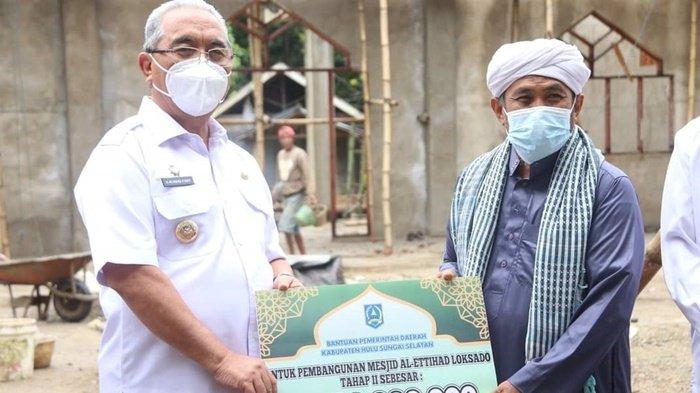 BANJARMASINPOST.CO.ID, KANDANGAN - Pemerintah Kabupaten Hulu Sungai Selatan (Pemkab HSS) memberikan sumbangan uang tunai Rp 80 juta untuk pembangunan Masjid Al-Ettihad Loksado.