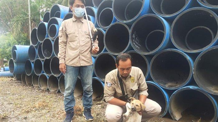 Oleh petugas, anjing ini pun dikeluarkan dari dalam pipa untuk kemudian diamankan dan dievakuasi ke Kebun Binatang Mini (KBM) Jahri Saleh.