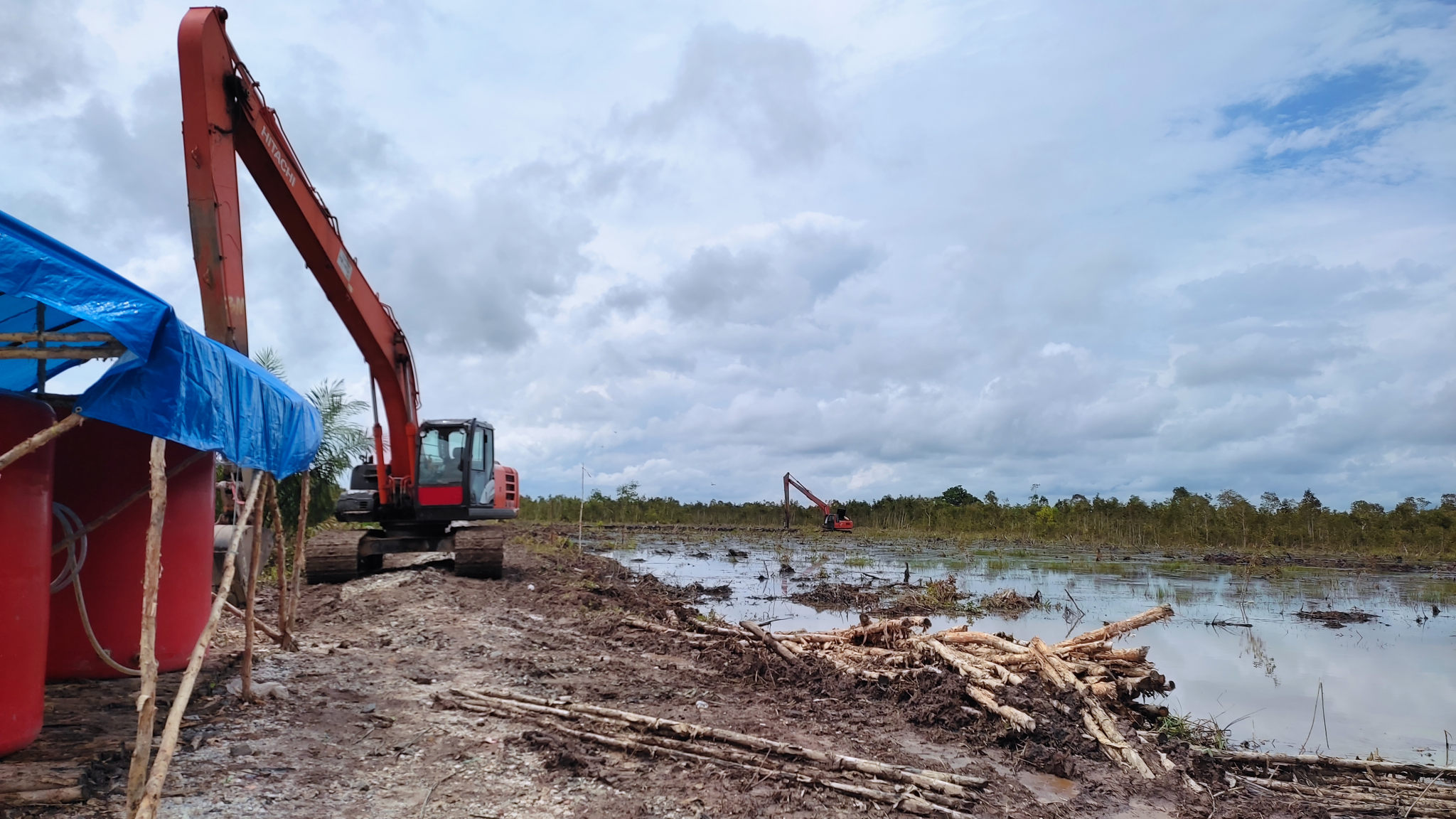 Disampaikan Saberi Thanoor, Kepala Dinas PUPR Batola, progres pengerjaan yang berjalan adalah tahap land clearing.