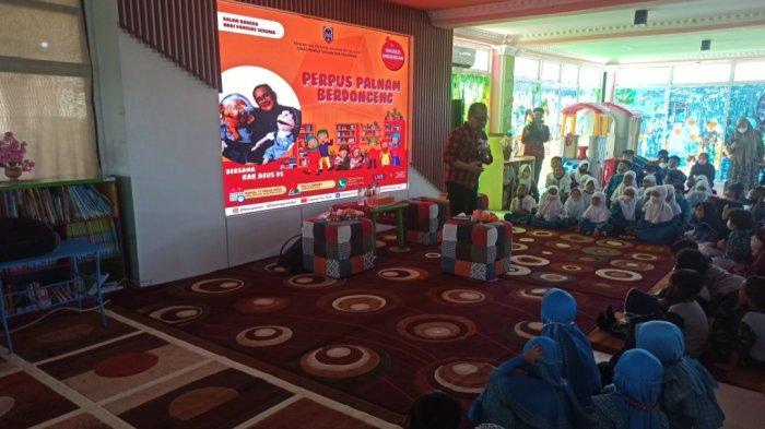 Puluhan Siswa TK se-Kota Banjarmasin Antusias Mendengarkan Dongeng Agus DS di Perpustakaan Palnam
