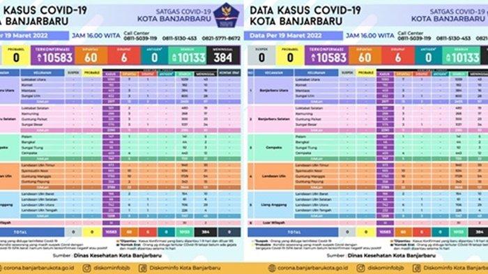 Update Covid-19 Banjarbaru, Sabtu (19/3/2022), total positif 10.583 orang, sebanyak 10.133 orang sembuh, 384 orang meninggal.