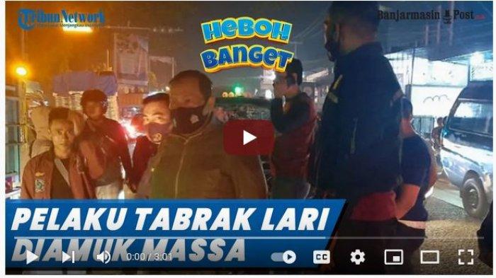 BANJARMASINPOST.CO.ID - Peristiwa main hakim sendiri kembali terjadi. Video massa menghakimi seorang pria yang diduga menjadi pelaku tabrak lari di pertigaan Simpang Parung Kampung Jati Parung, Desa Parung, Kecamatan Parung, Kabupaten Bogor viral dimedia sosial.