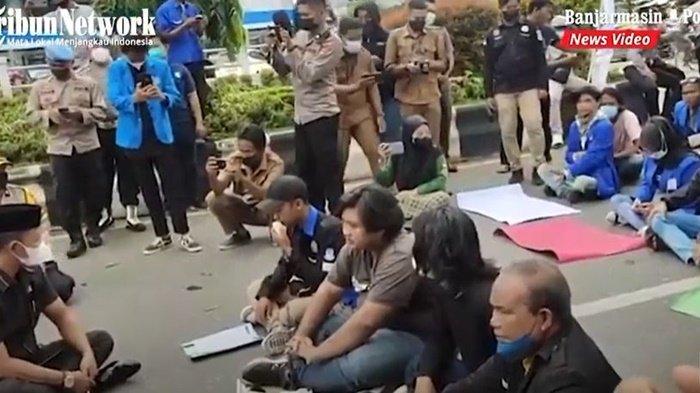 BANJARMASINPOST.CO.ID, Banjarmasin - Aksi unjuk rasa dilaksanakan oleh sejumlah elemen masyarakat dan mahasiswa di depan gedung DPRD Kalsel, Jalan Lambung Mangkurat Banjarmasin
