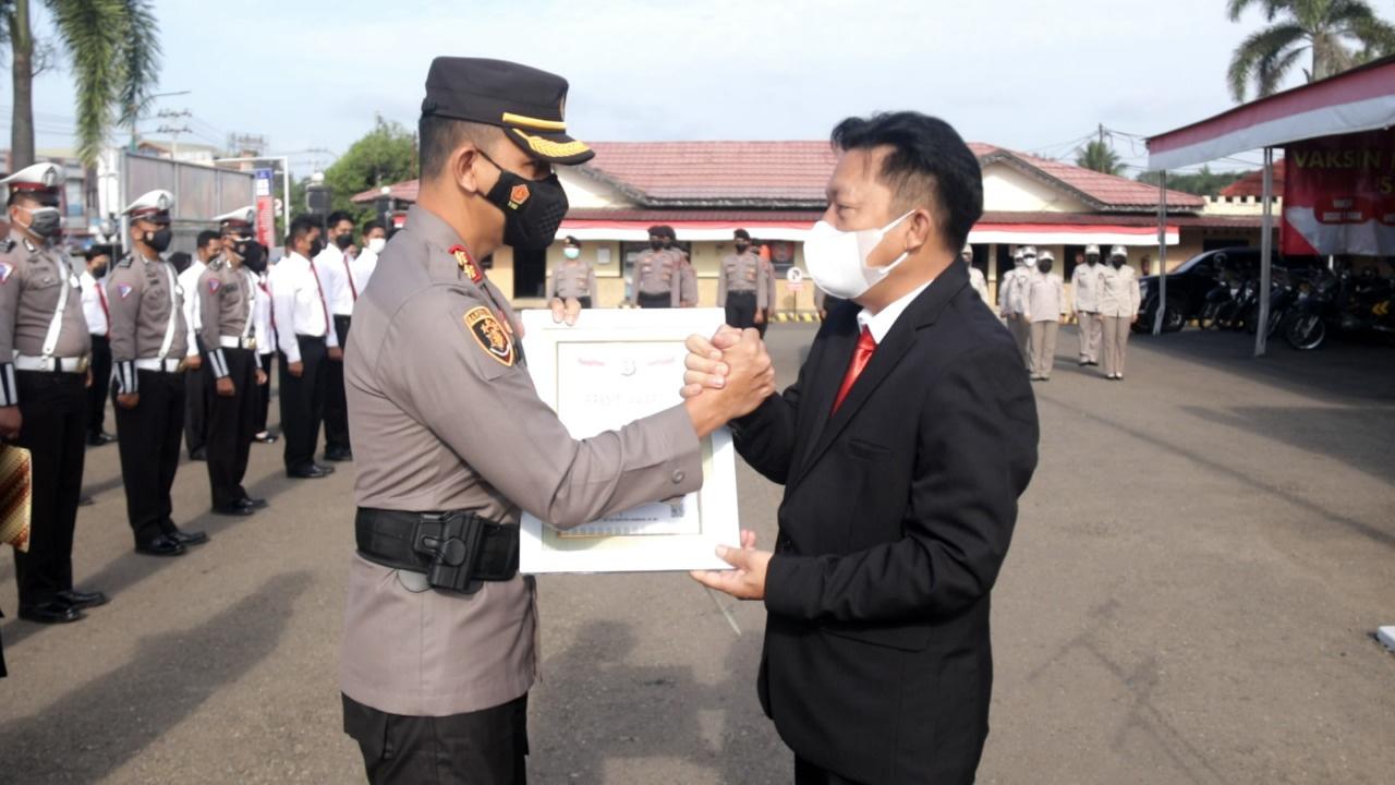 Dalam apel tersebut Direktur Eksekutif Lemkapi, Edi Saputra Hasibuan, menyerahkan penghargaan kepada Kapolres Tabalong AKBP Riza Muttaqin.