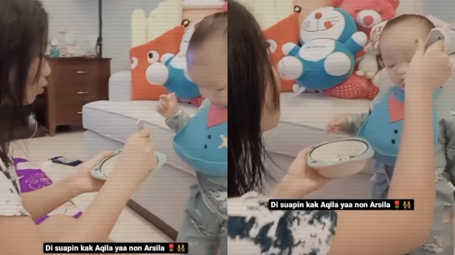 Perlakuan Aqila sedang menyuapi Arsila direkam oleh pengasuh Arsila dan dibagikan melalui instagramnya.