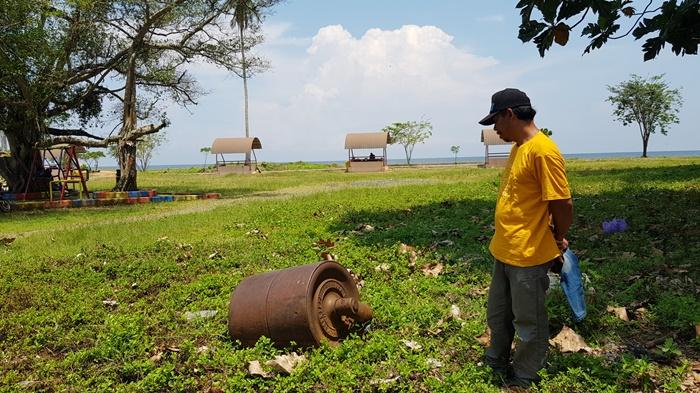 "Sering padahal lewat dekat benda itu, tapi selama ini tak pernah memperhatikannya, apalagi mendekatinya. Ya memang pernah saja sih melihatnya sepintas, saya kira barang rongsokan," ucap Sulanjari, dua hari lalu saat berada di Pantai Takisung.