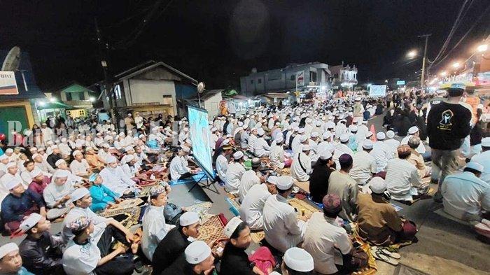BANJARMASINPOST.CO.ID, BANJARMASIN - Ribuan jemaah memadati kawasan Jalan Sulawesi hingga Jalan Masjid Jami, Kota Banjarmasin, saat acara Haul ke-2 Guru Zuhdi, Senin (11/4/2022) malam.