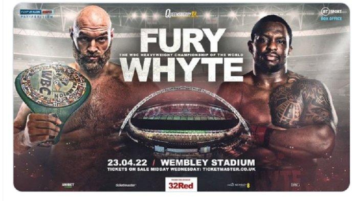 Jadwal Tinju Dunia antara Tyson Fury vs Dillian Whyte adalah Sabtu (23/4/2022) pukul 22.00 waktu London atau Minggu dini hari pukul 04.00 WIB.