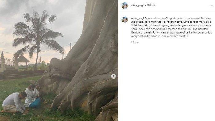 Bule wanita yang berpose tanpa pakaian di Pohon di Pura Babakan, Desa Tua Kecamatan Marga Kabupaten Tabanan, Bali yakni Alina Fazleeva minta maaf