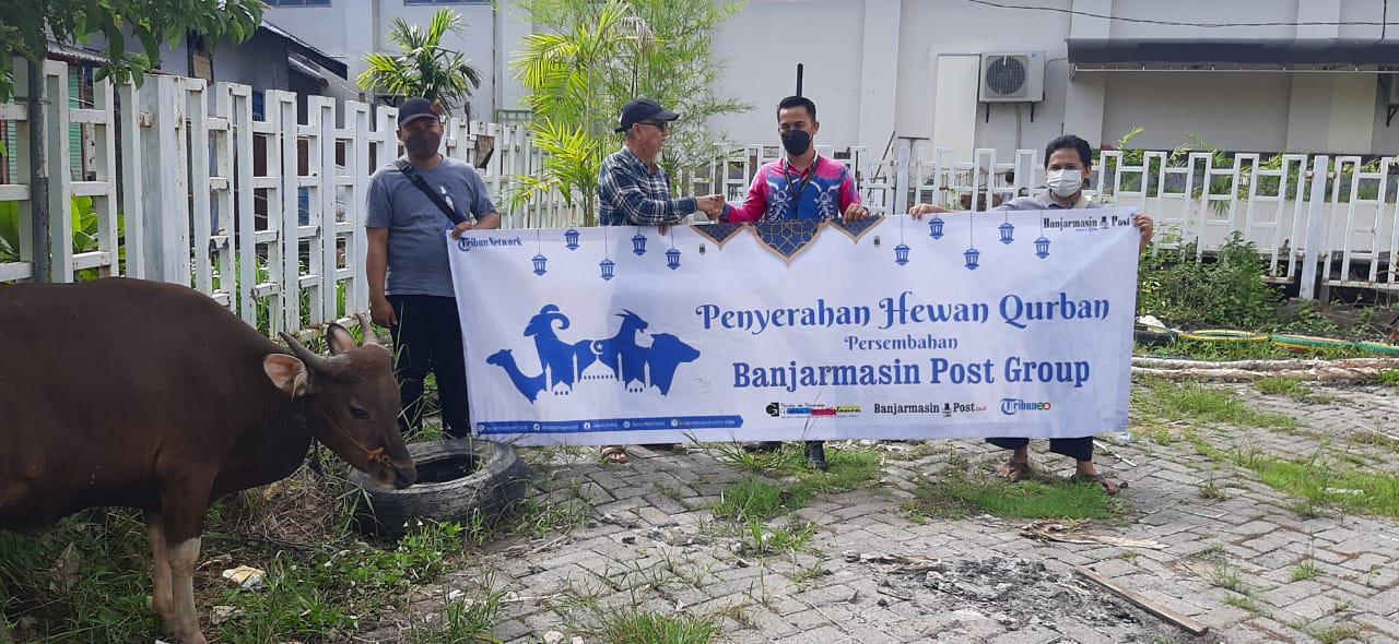 Penyerahan satu ekor sapi kurban dari Banjarmasin Post Group dilaksanakan di halaman belakang Masjid Hasanuddin Madjedie.