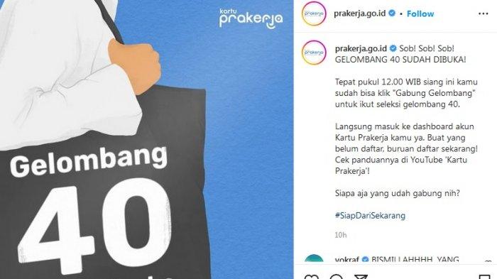 "Sob! Sob! Sob! GELOMBANG 40 SUDAH DIBUKA!" tulis @prakerja.go.id pada keterangan unggahannya.
