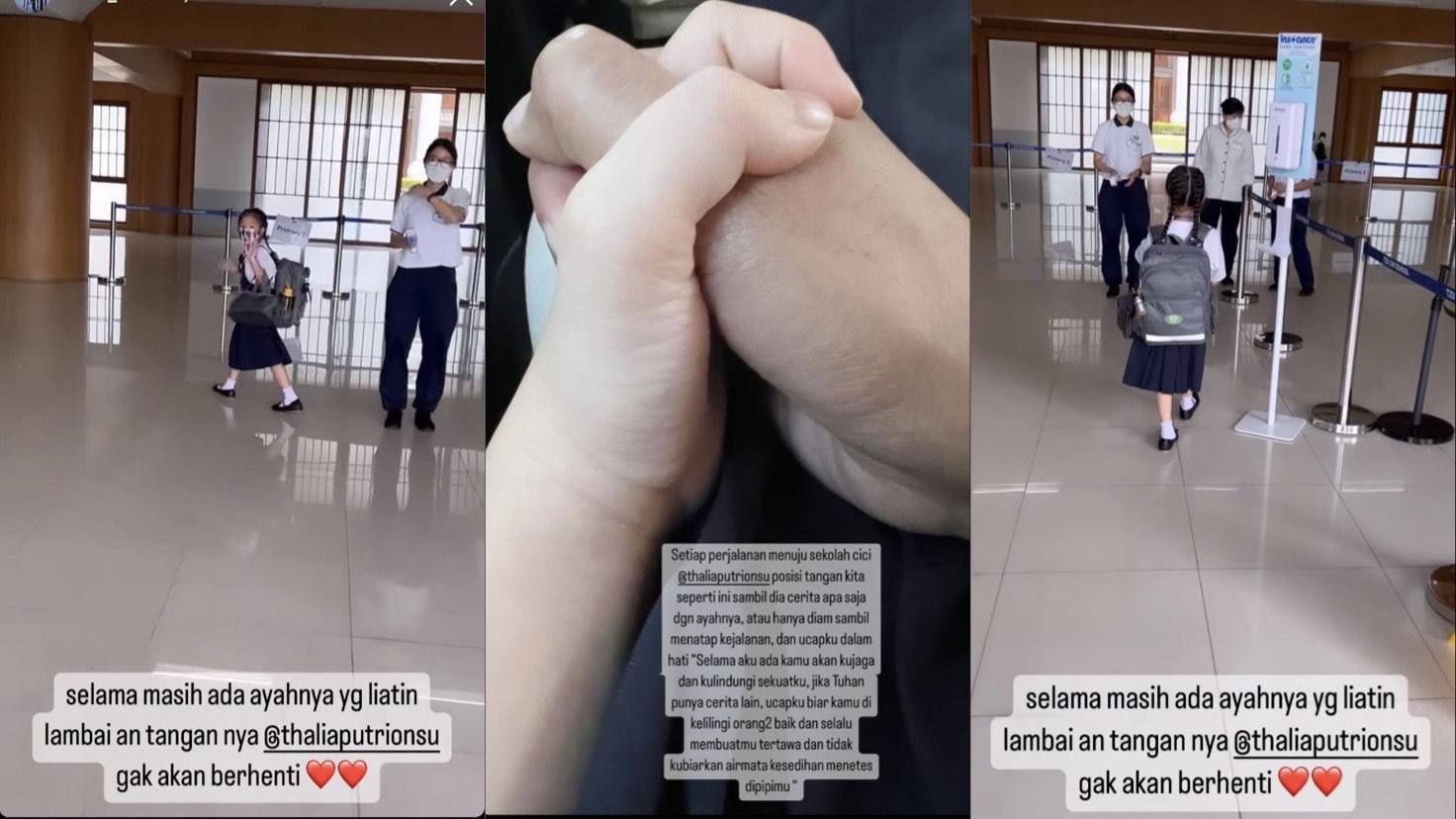 “Setiap perjalanan menuju sekolah cici thaliaputrionsuposisi tangan kita seperti ini sambil dia cerita apa saja dgn ayahnya, atau hanya diam sambil menatap kejalanan, dan ucapku dalam hati "Selama aku ada kamu akan kujaga dan kulindungi sekuatku, jika Tuhan punya cerita lain, ucapku biar kamu di kelilingi orang2 baik dan selalu membuatmu tertawa dan tidak kubiarkan airmata kesedihan menetes dipipimu, “ tulis Ruben Onsu dalam caption.