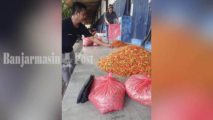 Pantauan Banjarmasinpost.co.id di Pasar Agrobisnis Barabai, Kabupaten HST, cabai dari berbagai jenis sangat berlimpah.