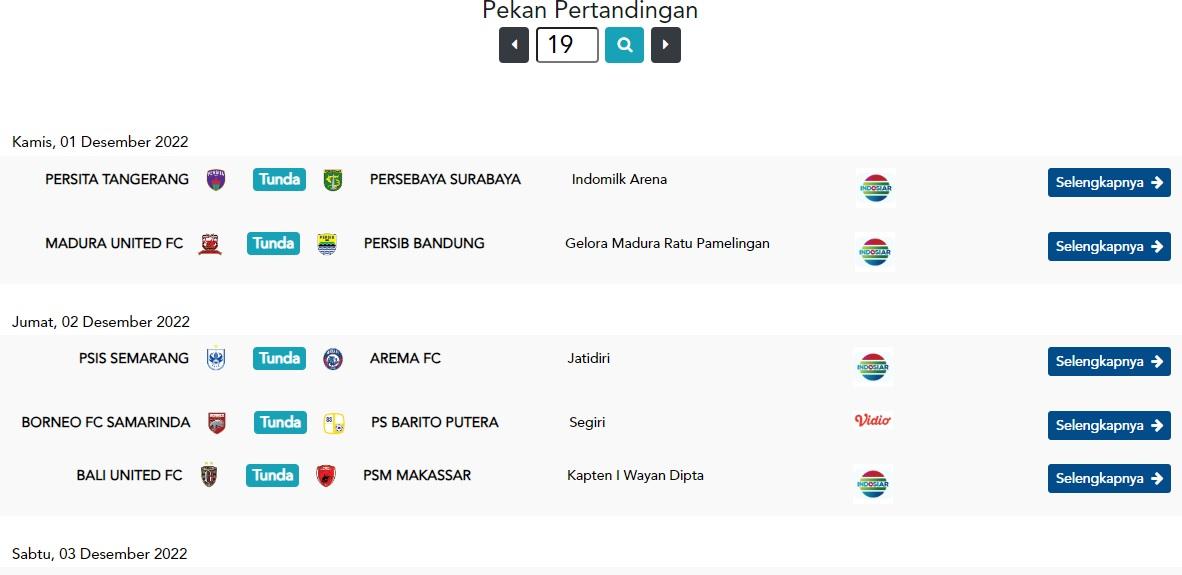 Jadwal Liga 1 2022 bakal dimulai kembali pada 5 Desember 2022. Lantas bagaimana nasib Persib vs Persija, PSIS Semarang dan Barito Putera di jadwal?