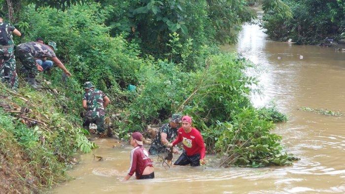 Sebagian lagi terjun ke sungai guna memangkas rerumputan yang tumbuh subur di badan sungai.