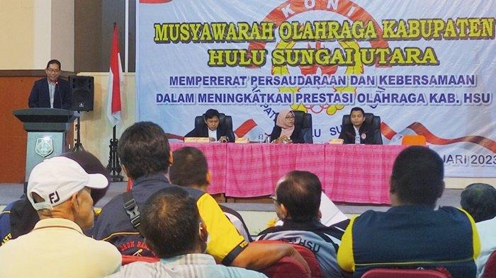Dihadiri perwakilan pengurus KONI Provinsi Kalimantan Selatan (Kalsel) dan pengurus cabor di HSU, musorkab dilaksanakan, Rabu (18/1/2023) di Aula KH Dr Idham Chalid, Amuntai.