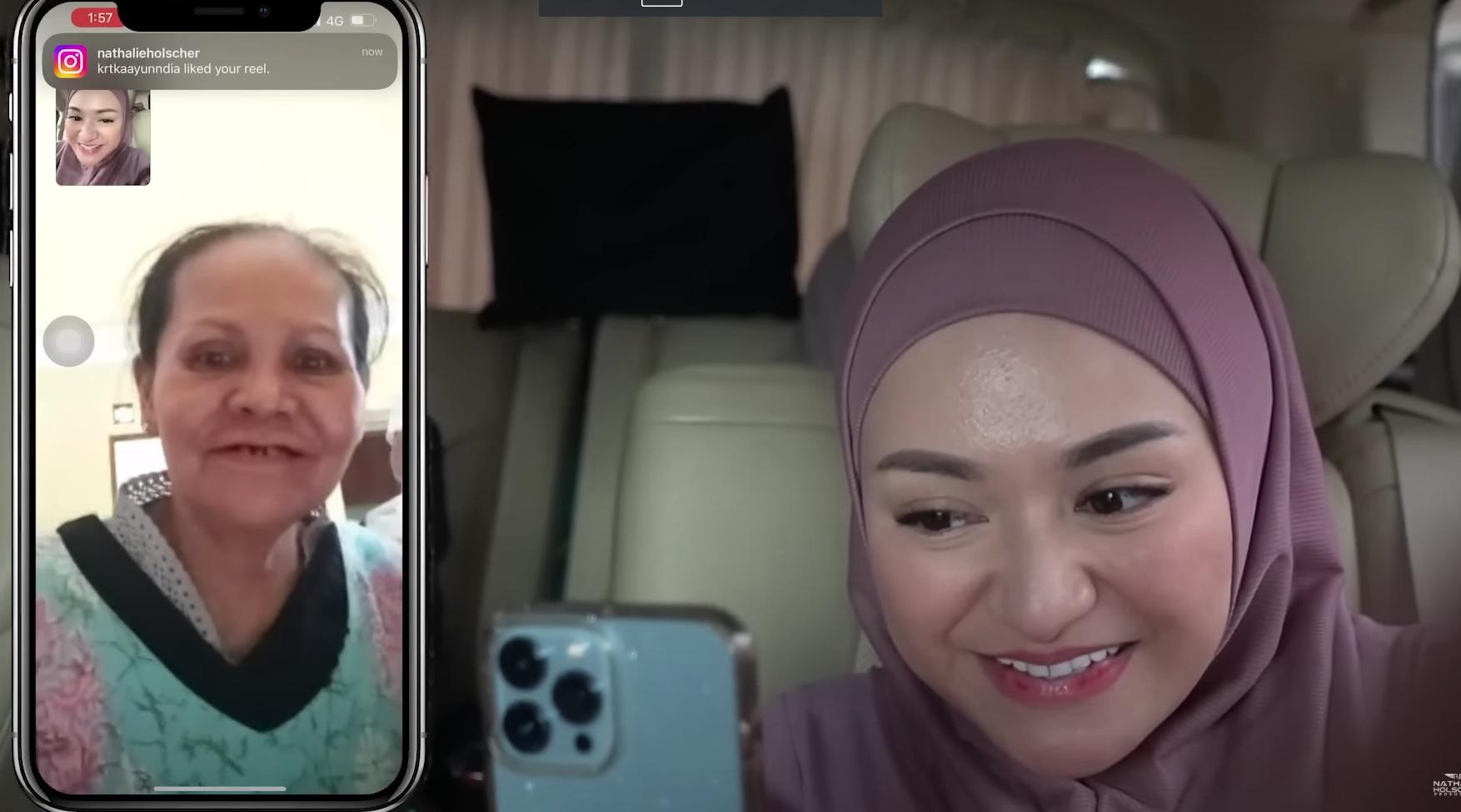 Dalam video call itu, Bu Eny tampak meminta oleh-oleh dari Bandung pada Nathalie.