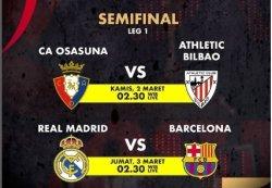 Jadwal siaran langsung semifinal Copa del Rey 2023 mempertemukan laga El Clasico Real Madrid vs Barcelona dan Osasuna vs Bilbao mulai pukul 02.30 WIB.