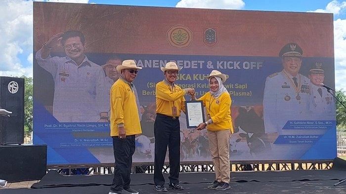 Penyerahan sertifikat hak cipta ini dilaksanakan bertepatan dengan kegiatan Panen Pedet Nasional dan Kick Off SISKA KU INTIP yang digelar di PT Buana Karya Bhakti (BKB) Kawasan SISKA Ranch (PT. Simbiosis Karya Agroindustri) Desa Jombang Kecamatan Satui Kabupaten Tanahbumbu, Sabtu (18/3/2023).