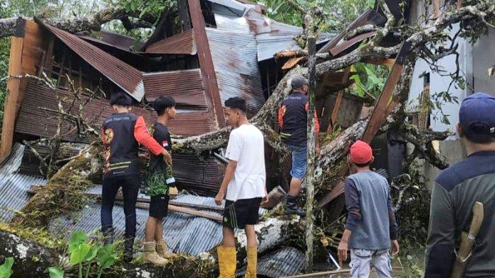 Hujan Deras dan Angin Kencang Tumbangkan Pohon dan Menimpa Satu Rumah di Wayau Tabalong