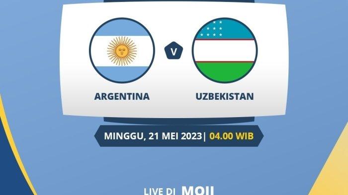 Jadwal tayang siaran langsung gratis dan Live Streaming Moji TV laga Argentina vs Uzbekistan malam ini adalah jam 04.00 WIB.
