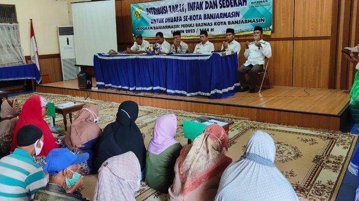 BANJARMASINPOST.CO.ID, BANJARMASIN - Badan Amil Zakat Nasional (Baznas) Kota Banjarmasin mendistribusikan dana tunai Rp 128.400.000 kepada 642 kaum duafa Banjarmasin, Rabu (24/5/2023) di Kecamatan Banjarmasin Utara.