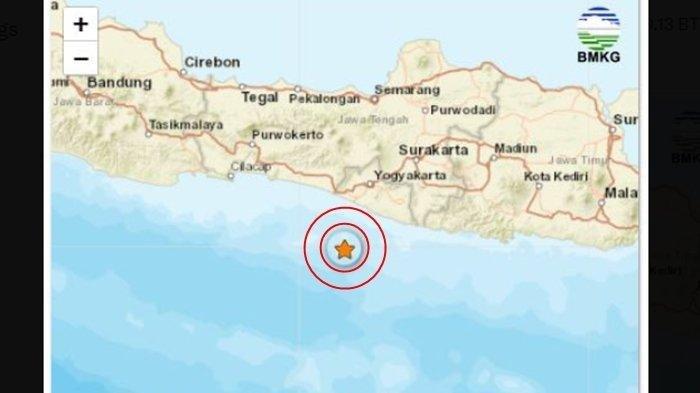 Lokasi pusat gempa berada di laut 63 km barat daya Bantul, Yogyakarta.