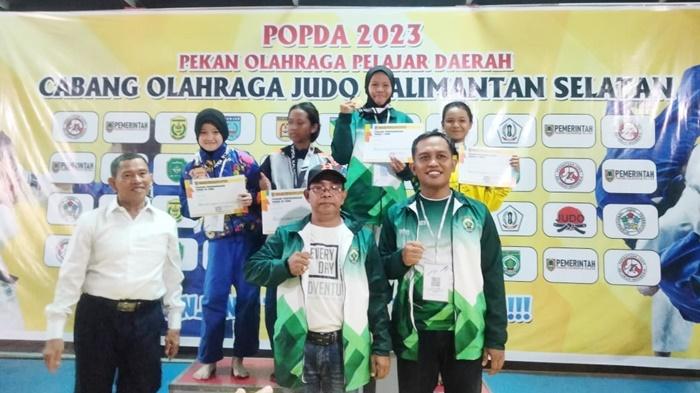 Tim Judo Kabupaten Balangan sumbangkan 3 medali emas, 1 perak dan 1 perunggu pada Popda Kalsel 2023 di GOR H Bambang, Jalan Teluk Tiram, Banjarmaasin.