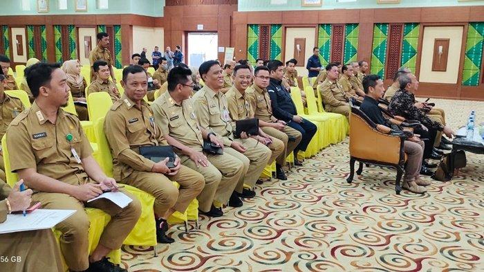 Sekretaris DPRD Kabupaten Barito Kuala (Batola), M Haris Isroyani, hadiri pertemuan membahas Pemilu 2024 di Aula Idham Chalid Setda Provinsi Kalsel.