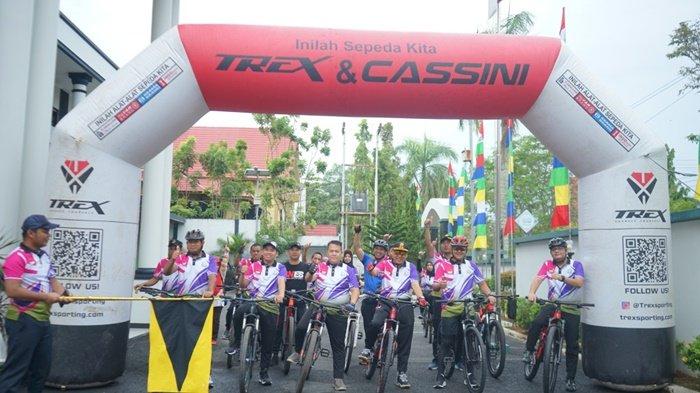 Gowes bersama dimulai start dari halaman Kantor Kejari HSU menempuh rute sekitar 5 kilometer untuk finish di lokasi penanaman bibit pohon buah di Desa Karias Dalam Kecamatan Banjang.