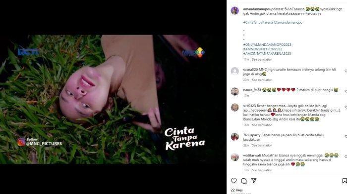 Kini kejadian serupa terjadi pada Bianca yang diperankan Amanda Manopo juga mengalami kecelakaan di Sinetron Cinta Karena Cinta.