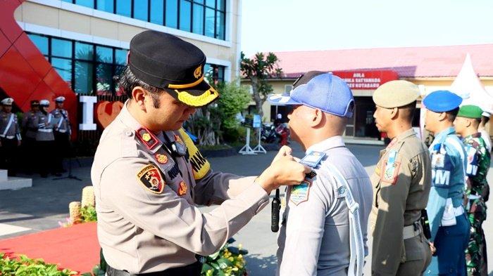 Waka Polres Kotabaru Kompol Agus Rusdi Sukandar saat membacakan amanat, menekankan beberapa poin. Operasi Kepolisian Zebra Intan Tahun 2023 dengan tema, Kamseltibcarlantas yang Kondusif Menuju Pemilu Damai 2024.