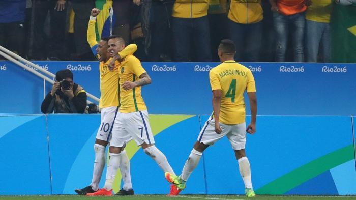 Bek Marquinhos melompat lebih tinggi dari semua orang dan menyundul tendangan sudut melengkung Neymar untuk mencetak gol kemenangan bagi Juara Dunia lima kali itu di akhir pertandingan.