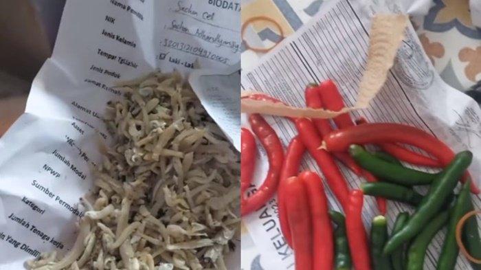 Kertas berisi informasi pelamar tersebut digunakan untuk membungkus teri kering dan cabai.
