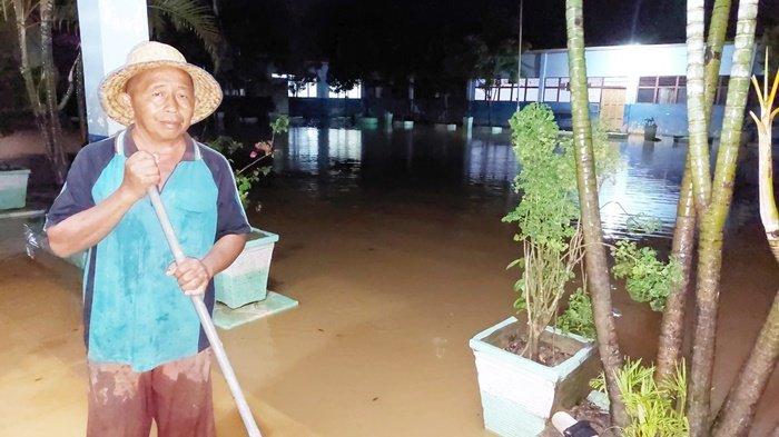 Air menggenangi fasilitas pendidikan tersebut, pasca Banjarbaru diguyur hujan sejak petang hingga malam, Senin (27/11/2023).