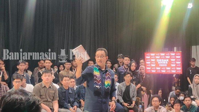 Selain agenda Kampanye Nasional di Gedung Sultan Suriansyah, Banjarmasin, Selasa (5/12/2023). Anies juga menjawab pertanyaan dari kalangan mahasiswa dan pelajar di Wetlands Square, Banjarmasin dalam agenda Desak Anies.