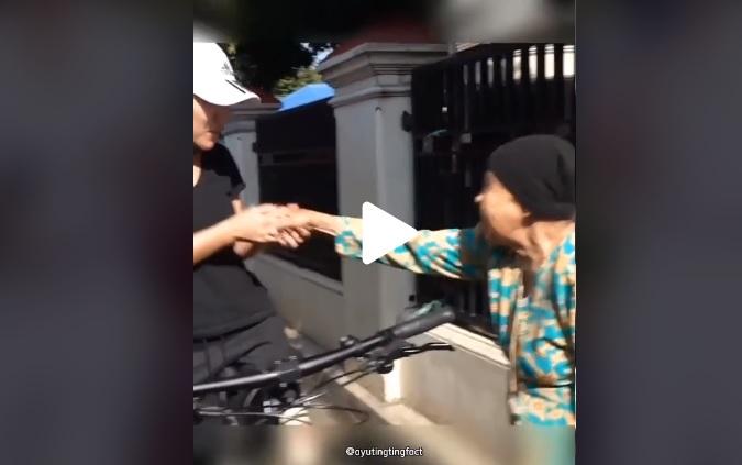 Dia lantas mencium tangan nenek-nenek yang bertemu dengannya.