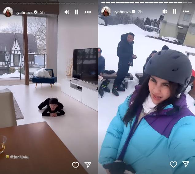 Bersama seluruh keluarga besar termasuk mama Amy, mama Rieta, Raffi, dan Gigi, Syahnaz serta Jeje sedang berwisata salju di Hakuba.