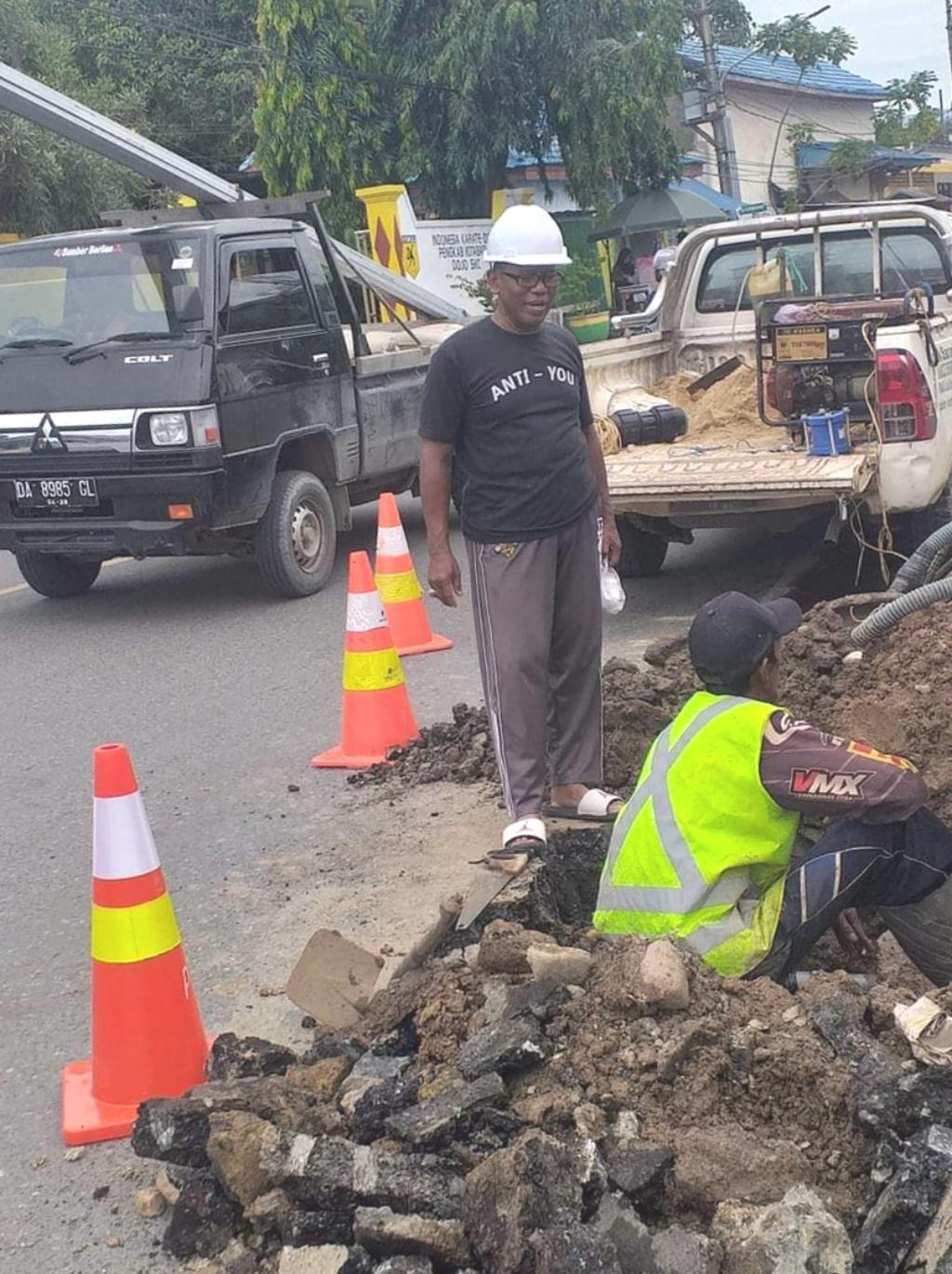 Perbaikan pipa bocor di kawasan Jalan Pangeran Hidayat, penanganan dilakukan segera. Selain meminimalisir kehilangan air, juga meningkatkan pelayanan.