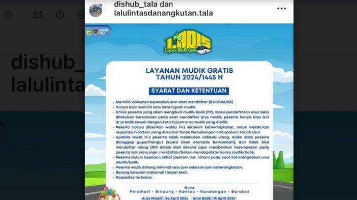 Mau ikut mudik gratis dari Dishub Tala, nah berikut ini tujuan serta cara daftarnya, simak ya baik-baik jika tertarik