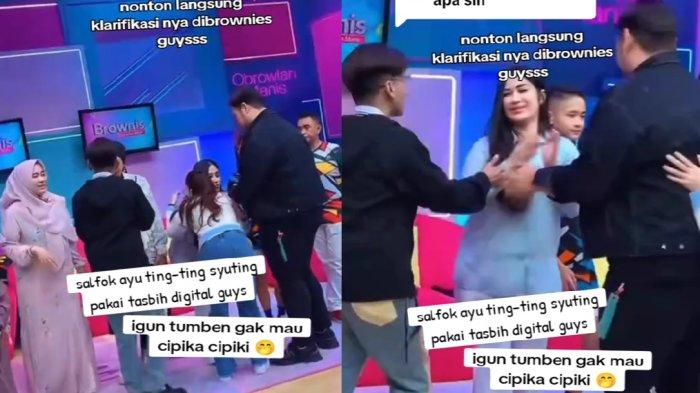 "Salfok Ayu Ting Ting syuting pakai tasbih digital guys, Igun tumben enggak mau cipika-cipiki," tulisan penggunggah video tersebut.